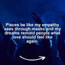 Motivational Pisces zodiac meme: Pisces be like my empathy sees through masks and my dreams remind people what love should feel like again. Share your Pisces energy on ZodiacMemes.com.