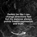 Motivational Gemini zodiac meme: Gemini be like I can change directions fast but my purpose always points toward expression and truth. Share your Gemini energy on ZodiacMemes.com.